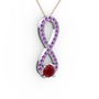 Kök yakut ve ametist 8 ayar beyaz altın kolye (40 cm rose altın rolo zincir)