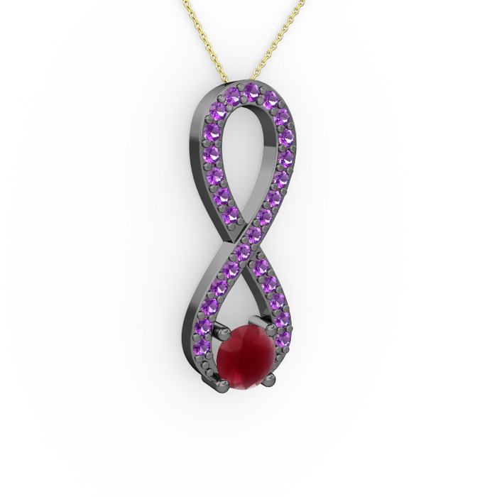 Kök yakut ve ametist 925 ayar siyah rodyum kaplama gümüş kolye (40 cm gümüş rolo zincir)