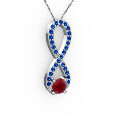 Kök yakut ve lab safir 925 ayar gümüş kolye (40 cm gümüş rolo zincir)