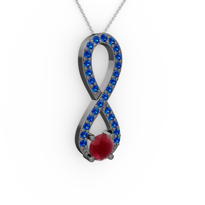 Kök yakut ve lab safir 925 ayar siyah rodyum kaplama gümüş kolye (40 cm beyaz altın rolo zincir)