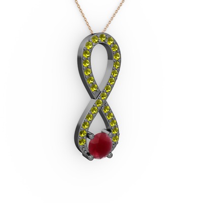 Kök yakut ve peridot 925 ayar siyah rodyum kaplama gümüş kolye (40 cm rose altın rolo zincir)