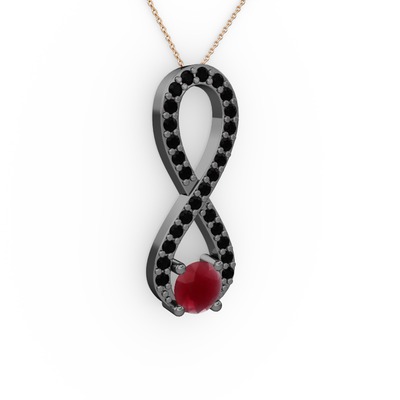 Kök yakut ve siyah zirkon 925 ayar siyah rodyum kaplama gümüş kolye (40 cm rose altın rolo zincir)