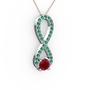 Kök yakut ve yeşil kuvars 18 ayar beyaz altın kolye (40 cm rose altın rolo zincir)