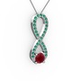 Kök yakut ve yeşil kuvars 925 ayar gümüş kolye (40 cm gümüş rolo zincir)