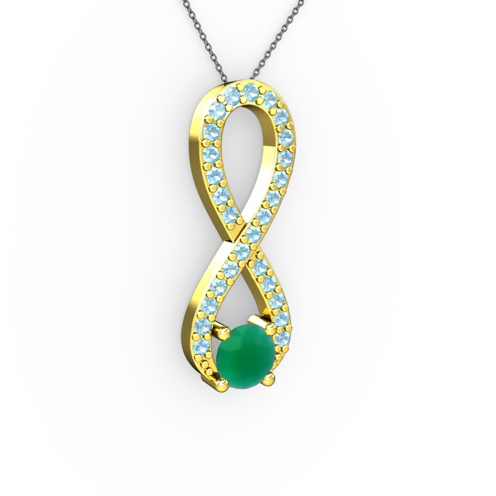 Kök zümrüt ve akuamarin 8 ayar altın kolye (40 cm gümüş rolo zincir)