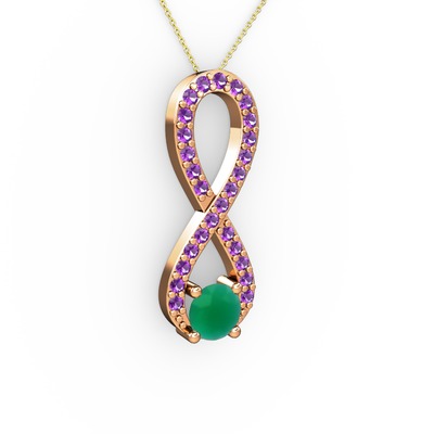 Kök zümrüt ve ametist 18 ayar rose altın kolye (40 cm altın rolo zincir)