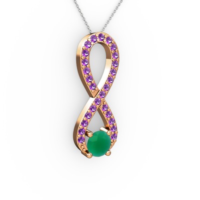 Kök zümrüt ve ametist 8 ayar rose altın kolye (40 cm beyaz altın rolo zincir)