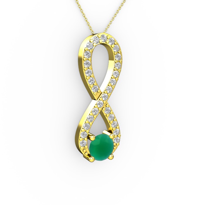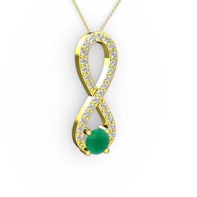 Kök zümrüt ve beyaz zirkon 18 ayar altın kolye (40 cm altın rolo zincir)