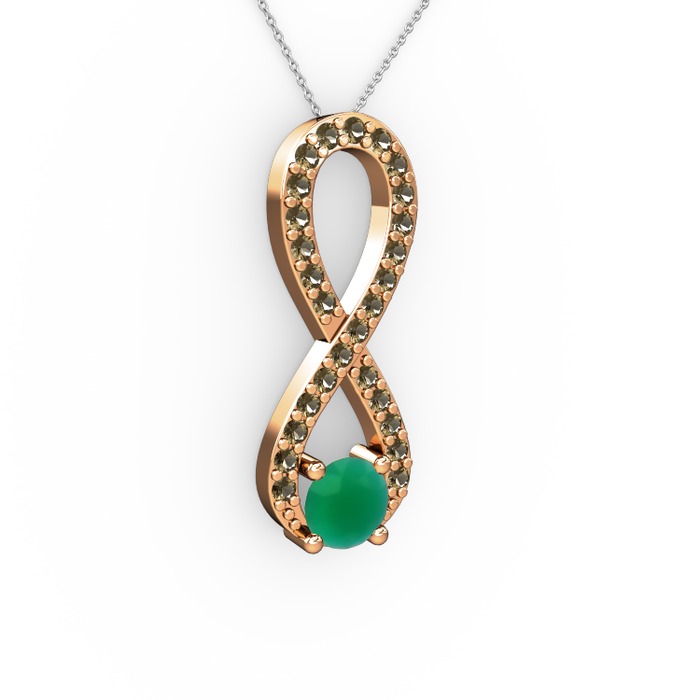 Kök zümrüt ve dumanlı kuvars 18 ayar rose altın kolye (40 cm gümüş rolo zincir)
