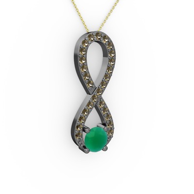 Kök zümrüt ve dumanlı kuvars 925 ayar siyah rodyum kaplama gümüş kolye (40 cm altın rolo zincir)