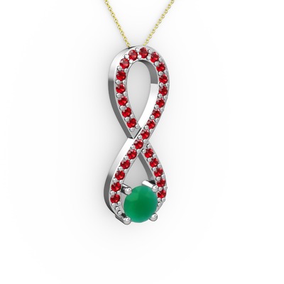 Kök zümrüt ve garnet 18 ayar beyaz altın kolye (40 cm gümüş rolo zincir)