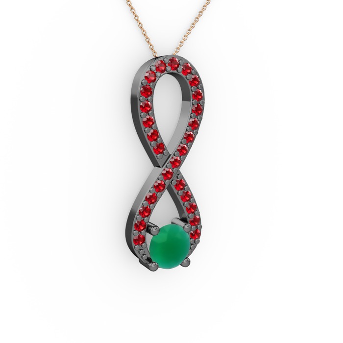 Kök zümrüt ve garnet 925 ayar siyah rodyum kaplama gümüş kolye (40 cm rose altın rolo zincir)
