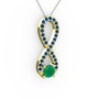 Kök zümrüt ve lab safir 18 ayar altın kolye (40 cm beyaz altın rolo zincir)