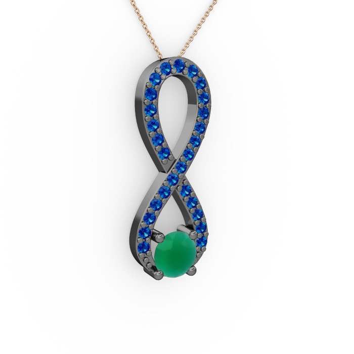 Kök zümrüt ve lab safir 925 ayar siyah rodyum kaplama gümüş kolye (40 cm rose altın rolo zincir)