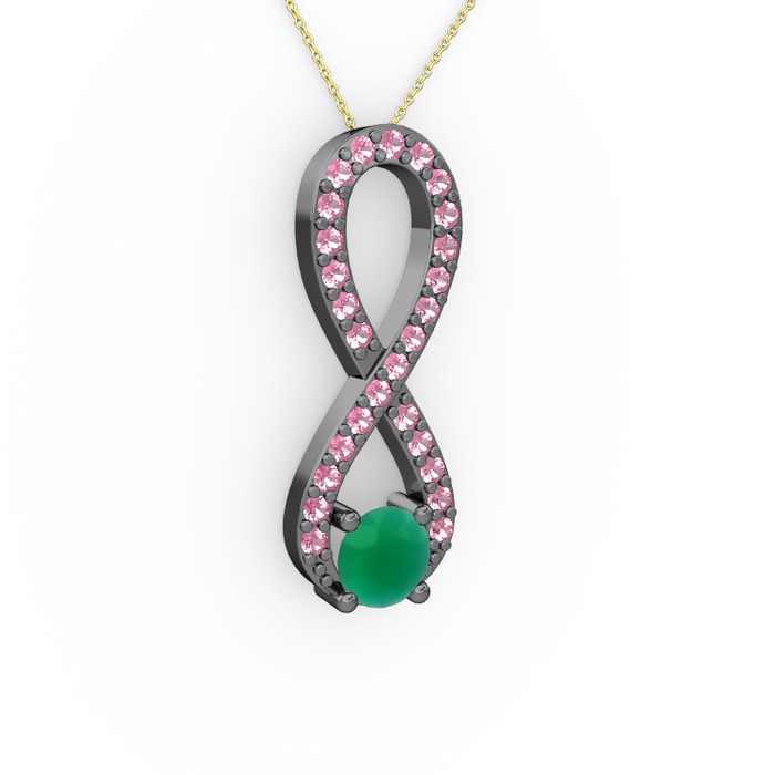 Kök zümrüt ve pembe kuvars 925 ayar siyah rodyum kaplama gümüş kolye (40 cm altın rolo zincir)