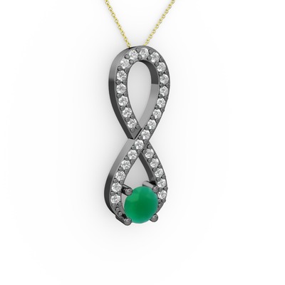 Kök zümrüt ve pırlanta 925 ayar siyah rodyum kaplama gümüş kolye (0.2376 karat, 40 cm altın rolo zincir)