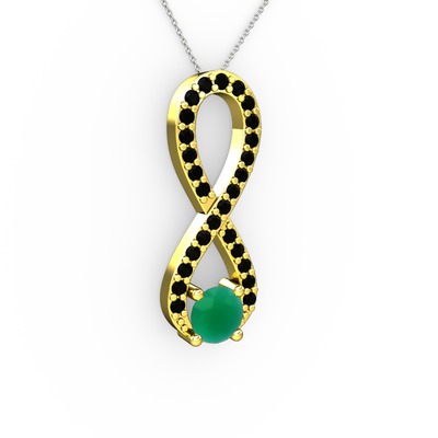 Kök zümrüt ve siyah zirkon 18 ayar altın kolye (40 cm beyaz altın rolo zincir)