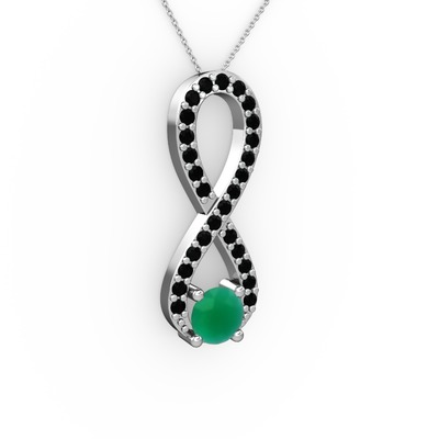 Kök zümrüt ve siyah zirkon 18 ayar beyaz altın kolye (40 cm beyaz altın rolo zincir)