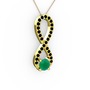 Kök zümrüt ve siyah zirkon 925 ayar altın kaplama gümüş kolye (40 cm rose altın rolo zincir)