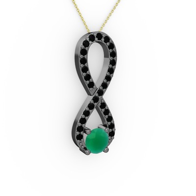 Kök zümrüt ve siyah zirkon 925 ayar siyah rodyum kaplama gümüş kolye (40 cm altın rolo zincir)