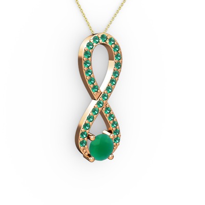 Kök zümrüt ve yeşil kuvars 925 ayar rose altın kaplama gümüş kolye (40 cm gümüş rolo zincir)