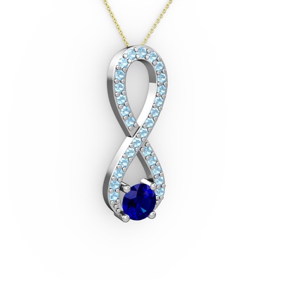 Lab safir ve akuamarin 14 ayar beyaz altın kolye (40 cm altın rolo zincir)