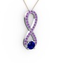 Lab safir ve ametist 14 ayar beyaz altın kolye (40 cm gümüş rolo zincir)