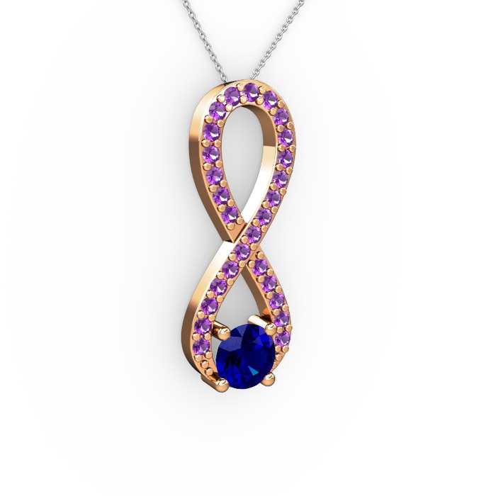 Lab safir ve ametist 14 ayar rose altın kolye (40 cm gümüş rolo zincir)