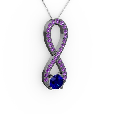Lab safir ve ametist 925 ayar siyah rodyum kaplama gümüş kolye (40 cm beyaz altın rolo zincir)