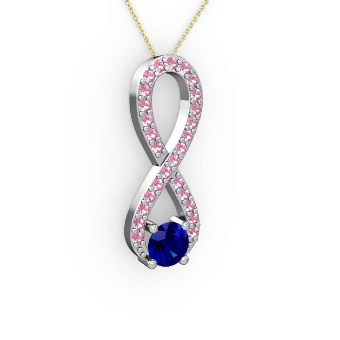 Lab safir ve pembe kuvars 18 ayar beyaz altın kolye (40 cm altın rolo zincir)