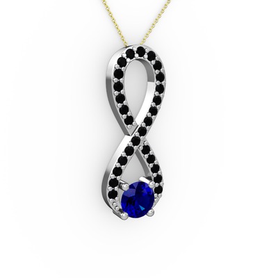 Lab safir ve siyah zirkon 18 ayar beyaz altın kolye (40 cm altın rolo zincir)