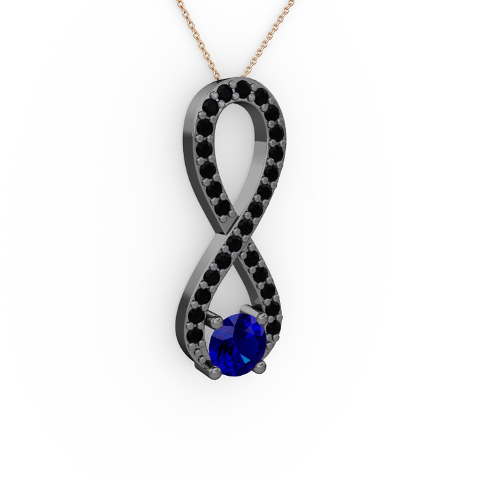 Lab safir ve siyah zirkon 925 ayar siyah rodyum kaplama gümüş kolye (40 cm gümüş rolo zincir)