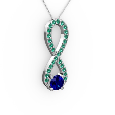 Lab safir ve yeşil kuvars 14 ayar beyaz altın kolye (40 cm beyaz altın rolo zincir)