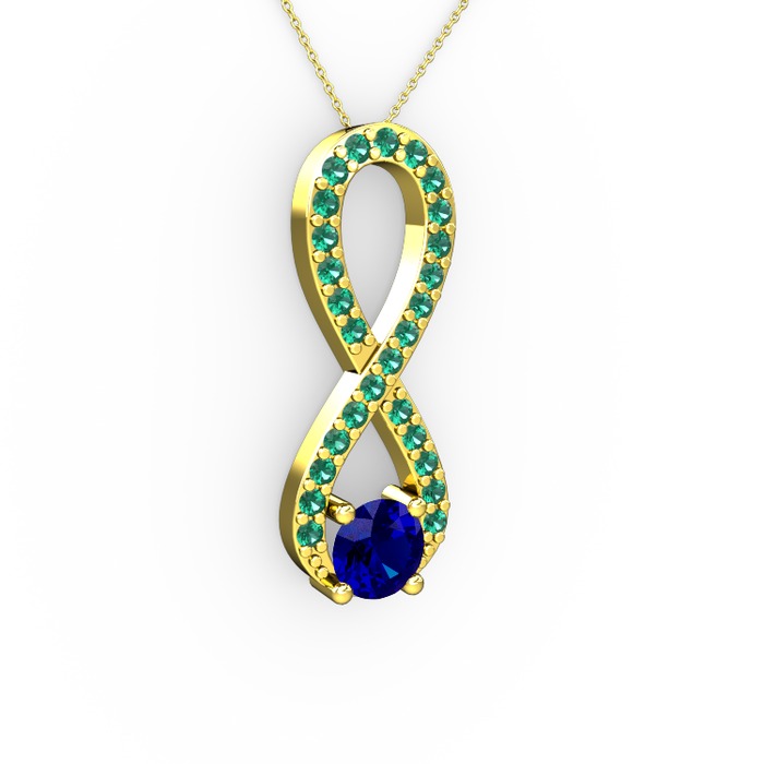 Lab safir ve yeşil kuvars 925 ayar altın kaplama gümüş kolye (40 cm altın rolo zincir)