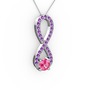 Pembe kuvars ve ametist 925 ayar gümüş kolye (40 cm beyaz altın rolo zincir)