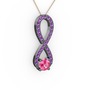 Pembe kuvars ve ametist 925 ayar siyah rodyum kaplama gümüş kolye (40 cm rose altın rolo zincir)