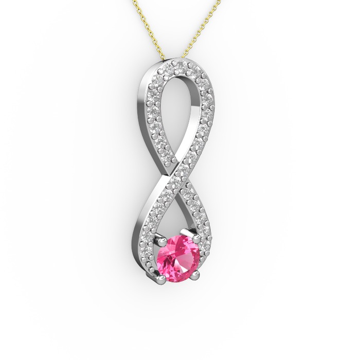 Pembe kuvars ve beyaz zirkon 925 ayar gümüş kolye (40 cm altın rolo zincir)