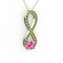 Pembe kuvars ve peridot 925 ayar gümüş kolye (40 cm altın rolo zincir)