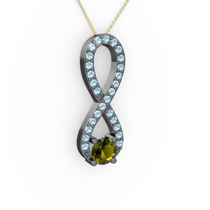 Peridot ve akuamarin 925 ayar siyah rodyum kaplama gümüş kolye (40 cm altın rolo zincir)