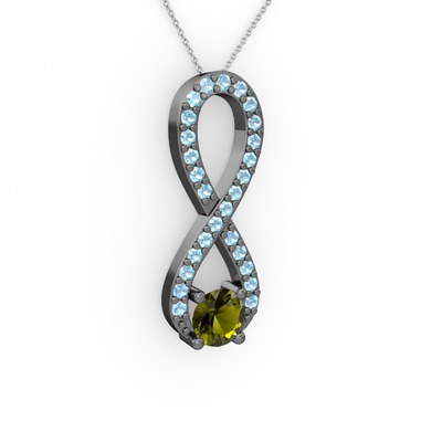Peridot ve akuamarin 925 ayar siyah rodyum kaplama gümüş kolye (40 cm gümüş rolo zincir)