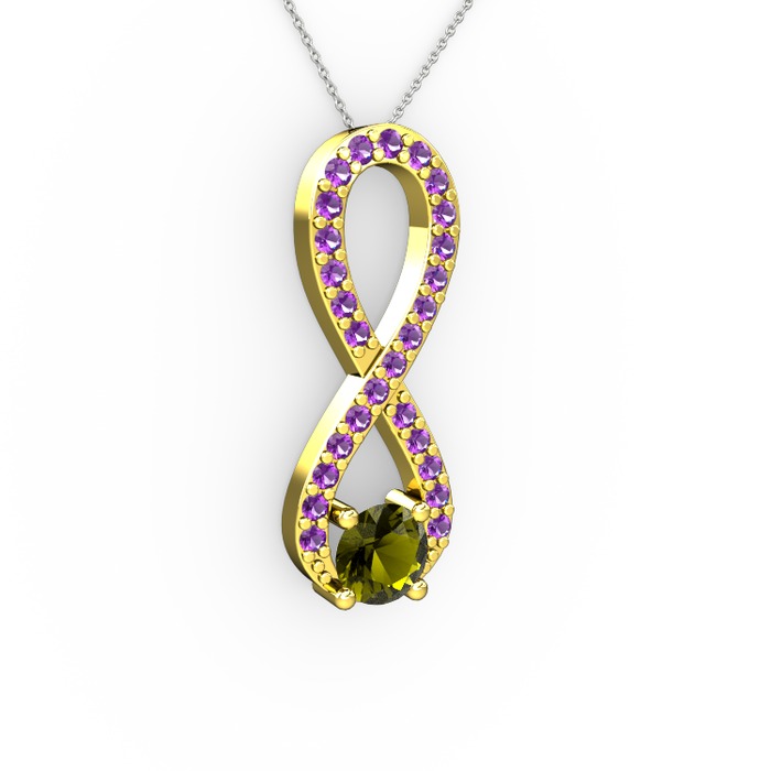 Peridot ve ametist 14 ayar altın kolye (40 cm gümüş rolo zincir)