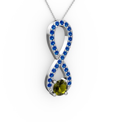 Peridot ve lab safir 14 ayar beyaz altın kolye (40 cm beyaz altın rolo zincir)