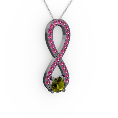 Peridot ve rodolit garnet 925 ayar siyah rodyum kaplama gümüş kolye (40 cm gümüş rolo zincir)