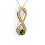 Peridot ve sitrin 14 ayar beyaz altın kolye (40 cm gümüş rolo zincir)