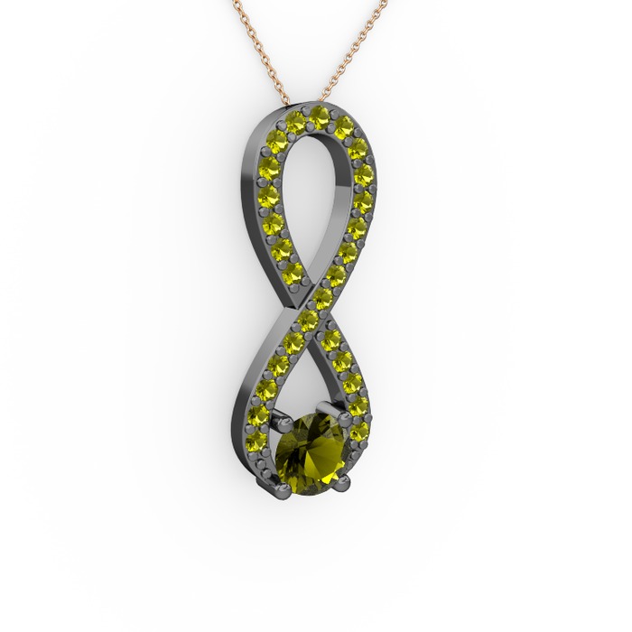 Peridot 925 ayar siyah rodyum kaplama gümüş kolye (40 cm rose altın rolo zincir)