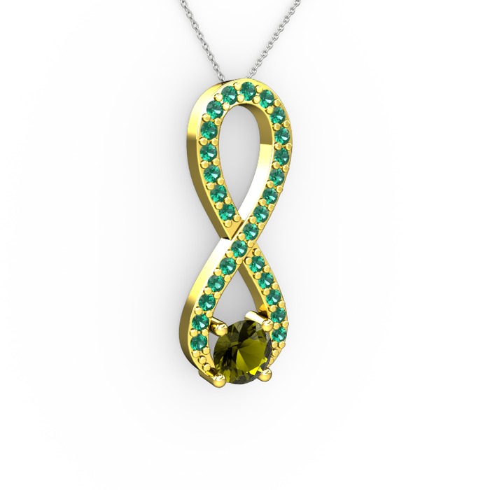 Peridot ve yeşil kuvars 18 ayar altın kolye (40 cm beyaz altın rolo zincir)