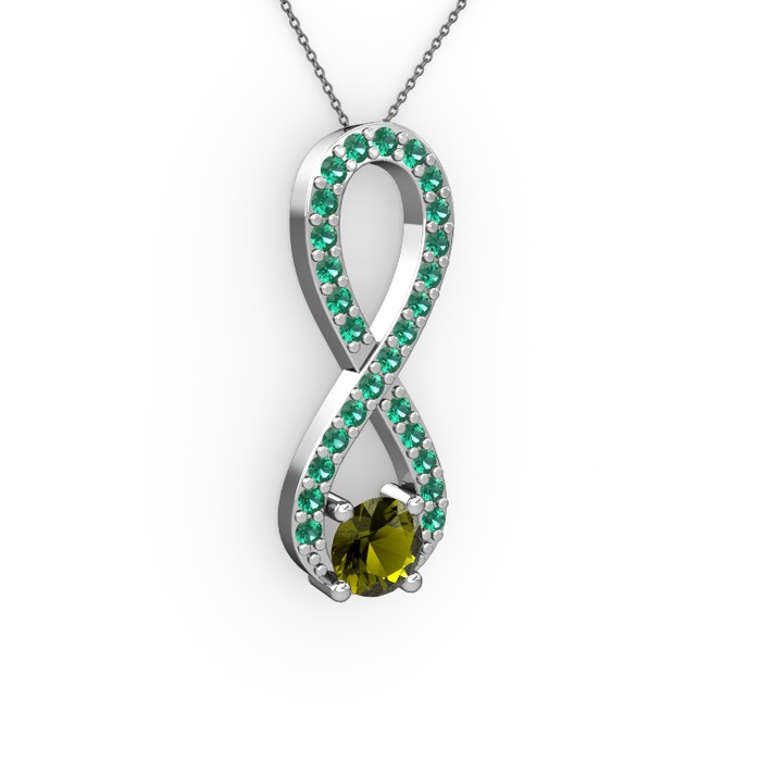 Peridot ve yeşil kuvars 18 ayar beyaz altın kolye (40 cm gümüş rolo zincir)