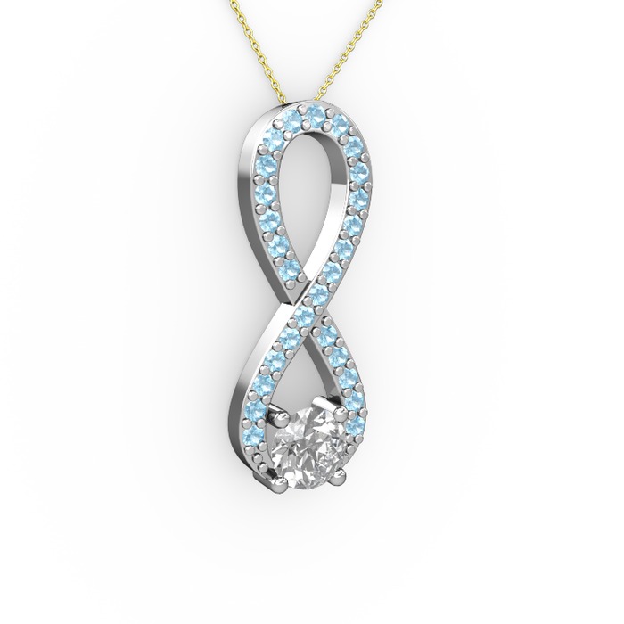 Pırlanta ve akuamarin 8 ayar beyaz altın kolye (0.24 karat, 40 cm altın rolo zincir)
