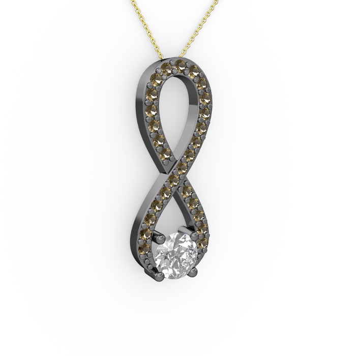 Pırlanta ve dumanlı kuvars 925 ayar siyah rodyum kaplama gümüş kolye (0.24 karat, 40 cm altın rolo zincir)