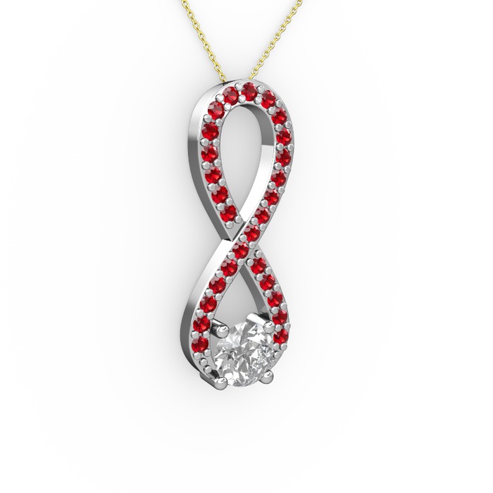 Pırlanta ve garnet 8 ayar beyaz altın kolye (0.24 karat, 40 cm altın rolo zincir)